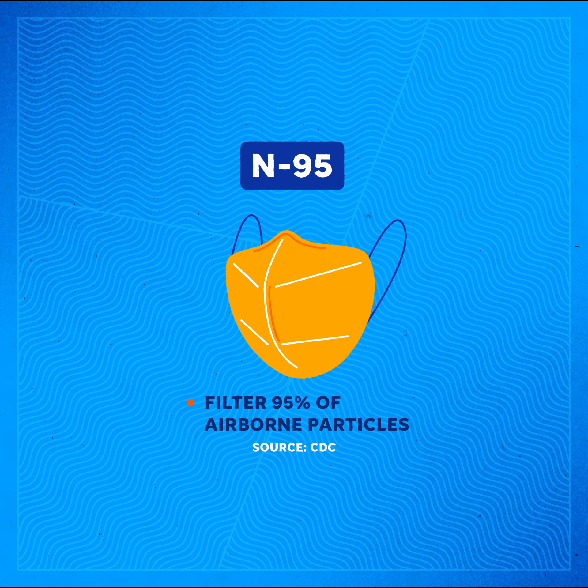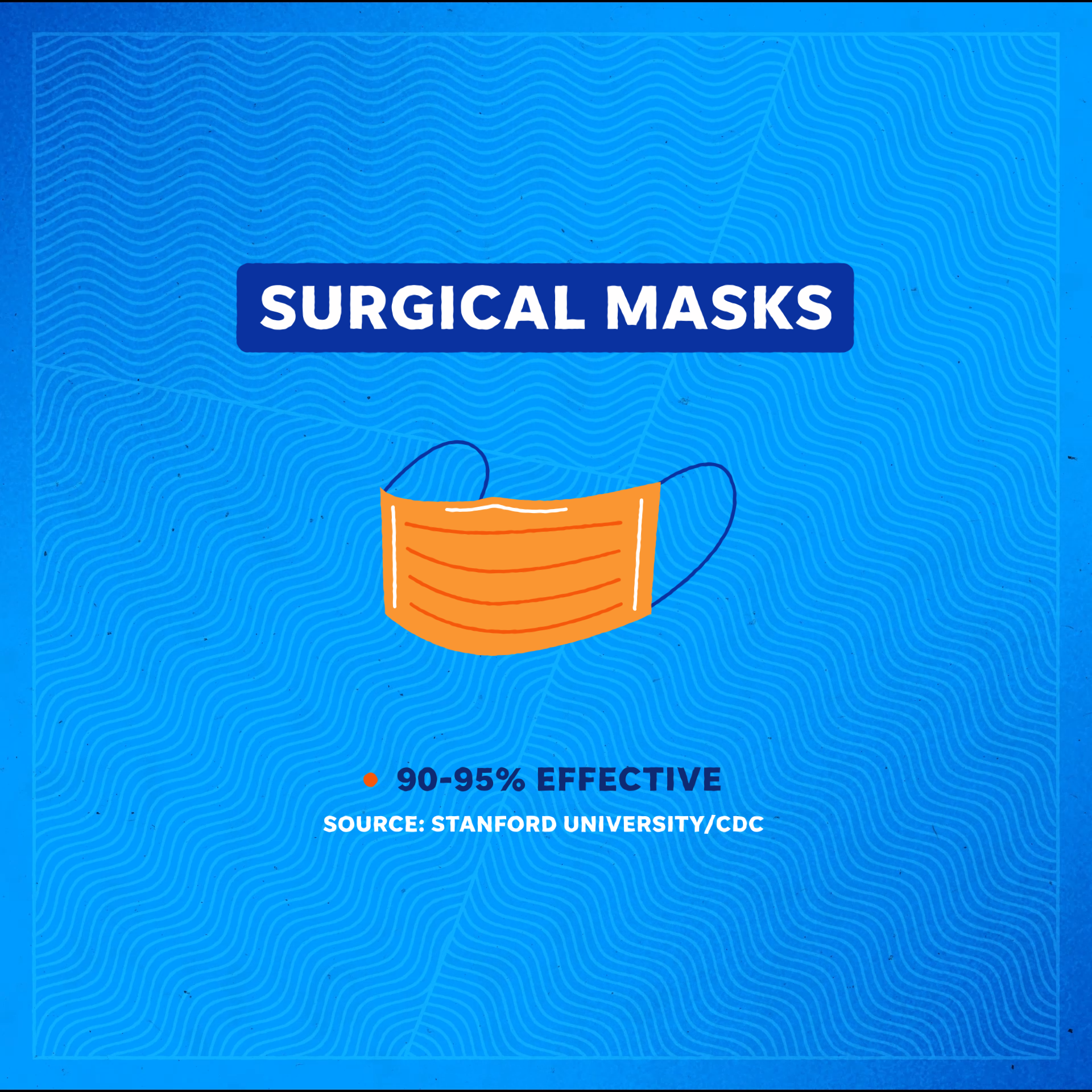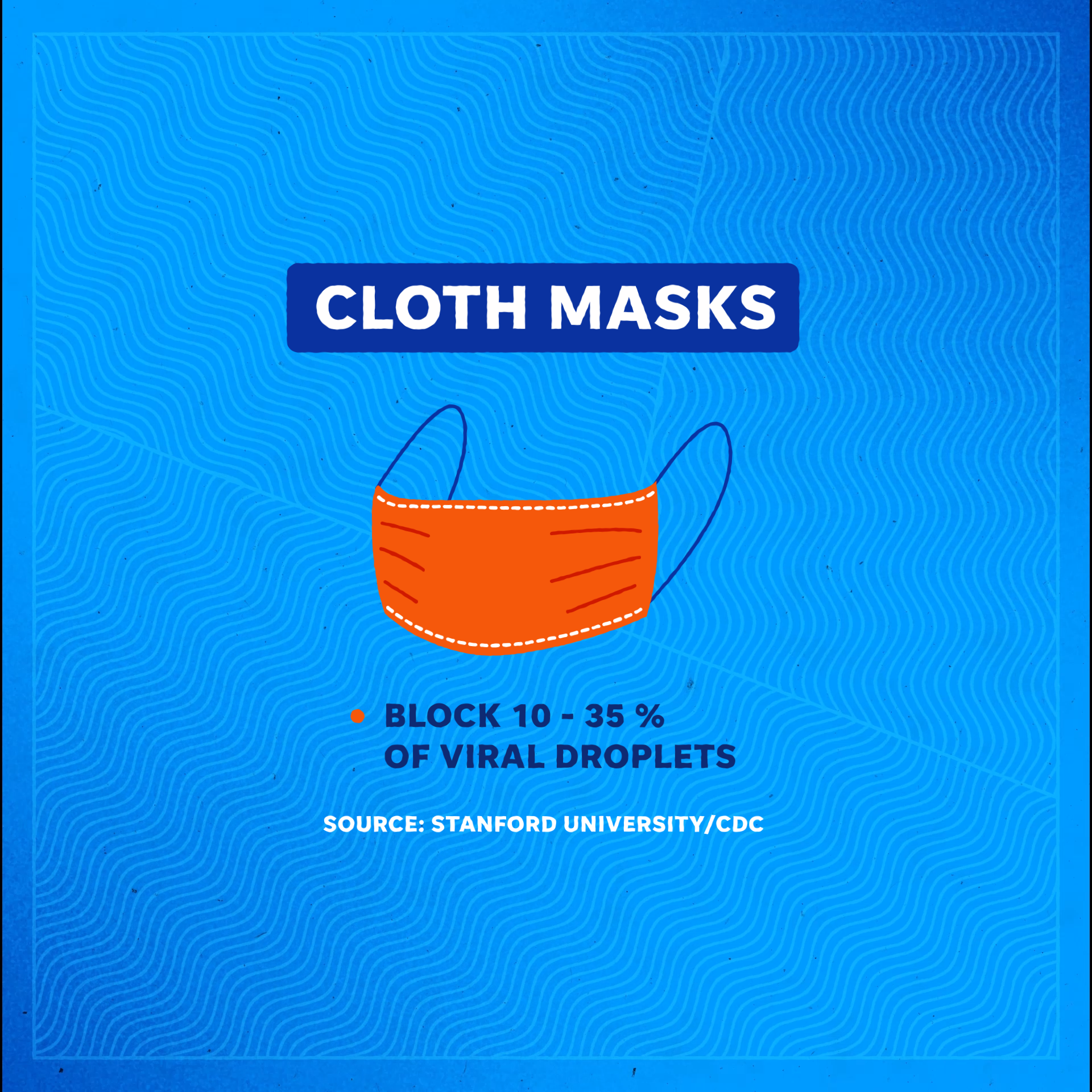 Style frames used in a USA Today explainer on varying masks and their efficiency in preventing infection.
